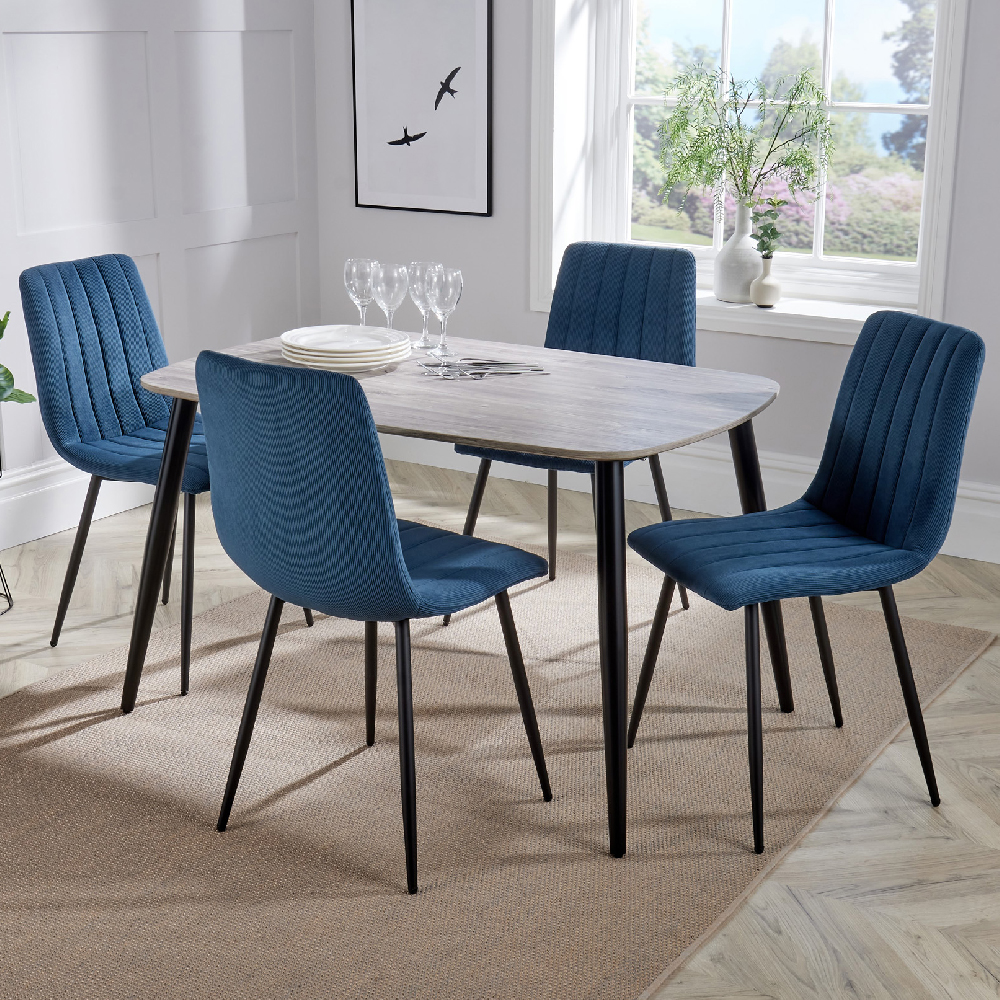 Arta Grey Wooden Dining Table 4 Blue Straight Chairs