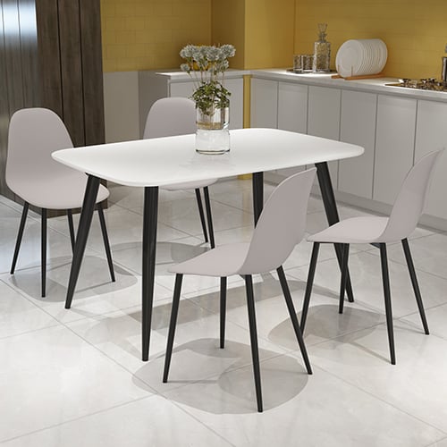 Arta White Wooden Dining Table 4 Duo Plastic Calico Chairs