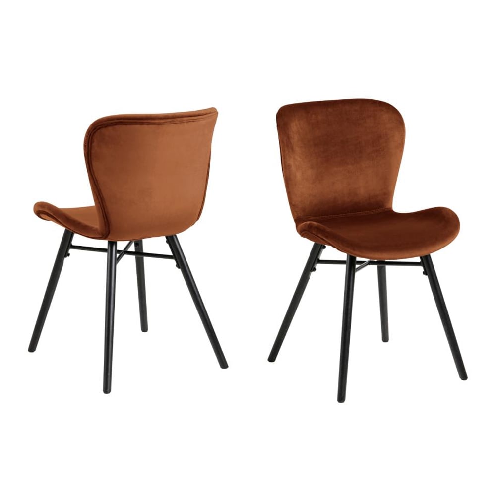 Elevate your dining experience with the Furniture in Fashion Baldwin Copper Fabric Dining Chairs With Black Legs In Pair. Featuring a striking copper-toned fabric upholstery and sleek black metal legs, these chairs are designed to bring warmth, sophistication, and modern flair to your dining space. Whether placed around a rustic wooden table or a contemporary glass one, the Baldwin chairs make a bold statement while offering everyday practicality. Upholstered in soft-touch fabric with padded seating and supportive backrests, the Baldwin Dining Chairs promise exceptional comfort for family meals, dinner parties, or casual gatherings. The sturdy black metal legs provide long-lasting stability, while the elegant copper hue introduces an eye-catching accent to any interior decor. Sold as a pair, these chairs are ideal for modern, industrial, or eclectic settings. Upgrade your dining area with the Furniture in Fashion Baldwin Copper Fabric Dining Chairs With Black Legs In Pair a perfect blend of modern design, comfort, and bold character. FEATURES : Material : Fabric, Metal Finish : Copper, Black The highly versatile dining chair, with exclusive design rights, enhances any dining room with a modern look The organic shape of the seat with a curved back offers a supportive and comfortable seating solution, while a sturdy base provides stability It is the perfect mix of style and comfort take a seat and enjoy a meal with family and friends Highly versatile dining chair Organic shape of the dining chair ensures a firm yet supportive sit Exclusive design rights Set of 2 dining chairs upholstered in luxurious copper fabric Soft padded seat and backrest for added comfort and support Strong black metal legs offer durability and modern contrast Contemporary design suitable for a variety of dining room styles Rich copper colour adds a warm, elegant touch to your decor Versatile chairs perfect for dining rooms, kitchen diners, or open-plan spaces