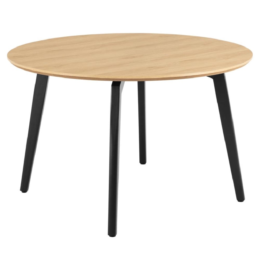 Upgrade your dining space with the Furniture in Fashion Cadott Wooden Round Dining Table in Oak, a perfect blend of contemporary style and timeless elegance. Crafted from high-quality wood with a stunning oak finish, this dining table offers durability and a warm, natural charm. Its Round shape provides ample space for family meals, gatherings, and special occasions, making it an ideal centrepiece for any modern or traditional home. Designed for both functionality and aesthetics, the Cadott Dining Table combines sturdy craftsmanship with a sleek, minimalist appeal. Its smooth wooden surface and strong legs ensure long-lasting use, while the spacious design comfortably accommodates multiple seating arrangements. Whether you’re hosting a dinner party or enjoying a casual meal, this stylish oak dining table enhances your dining experience with sophistication and practicality. Enhance your dining area with the Furniture in Fashion Cadott Wooden Round Dining Table in Oak, where style meets functionality for a refined and inviting ambiance. FEATURES : Material : Wooden Finish : Oak Sleek and practical in its design, this dining table is the perfect centrepiece in any dining room Gather around the table top, boasting an oak look, that is perched on black rough powder coated steel legs The Round table accommodates 8 people for a fun dinner party or a casual Sunday brunch Bar stool with back shaped by Scandinavian and contemporary aesthetics Contrasting Round dining table Easy-care table top boasting an oak look Black rough powder coated steel legs Comfortably seats 8 people Premium Wooden Construction Crafted from high-quality wood for strength and longevity Elegant Oak Finish Natural oak tone enhances any dining room dcor Spacious Round Design Provides ample seating space for family and guests Versatile Styling Complements both modern and classic interiors Sturdy and Durable Built with solid legs for enhanced stability and support
