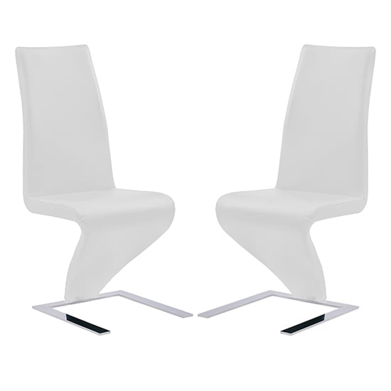 Demi Z White Faux Leather Dining Chairs With Chrome Feet In Pair