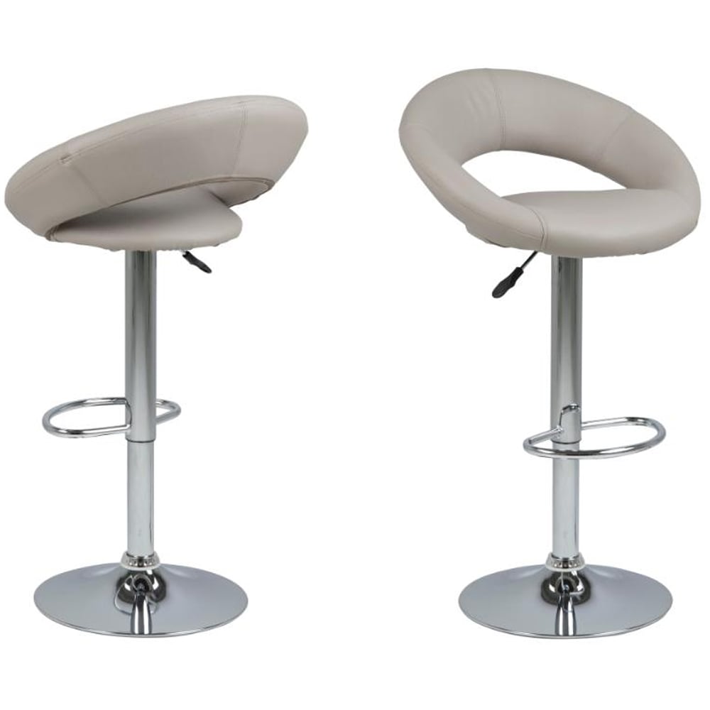 Add a touch of modern sophistication to your breakfast bar or kitchen island with the Plano Taupe PU Leather Bar Stools With Chrome Base In Pair from Furniture in Fashion. Upholstered in smooth Taupe PU leather, these bar stools offer both comfort and contemporary style, ideal for casual dining or entertaining. The sleek design is enhanced by a polished chrome base that adds a touch of luxury and stability to your space. Built with practicality in mind, the Plano bar stools feature an adjustable gas-lift mechanism and a 360-degree swivel function, ensuring a custom seating experience for every user. The integrated footrest and padded seat provide extra comfort, while the neutral Taupe finish complements a wide range of kitchen decors, from minimalist to industrial. The Furniture in Fashion Plano Taupe PU Leather Bar Stools With Chrome Base In Pair bring together comfort, functionality, and sleek designmaking them the perfect seating solution for any contemporary kitchen or bar area. FEATURES : Material : PU Leather Finish : Taupe, Chrome Round and soft shapes combined with leather look material are what the bar stool is made of The curved back of the seat ensures that you will feel comfortable while sitting around the kitchen island or bar table The gas lift makes it easy to adjust the barstool to your preferred height Curved back offers a comfortable seating solution Footrest provide comfort Adjustable height and swivel function Fire resistant materials Height Adjustable : Gas-lift mechanism allows for smooth and easy seat height adjustment 360-Degree Swivel : Offers complete freedom of movement and easy access Polished Chrome Base : Sleek, modern finish with strong support and integrated footrest Ergonomic Design : Curved backrest and padded seat for enhanced comfort Space-Saving Shape : Ideal for compact areas without compromising style Available at an affordable price Images shown are for illustration purpose only DIMENSIONS :